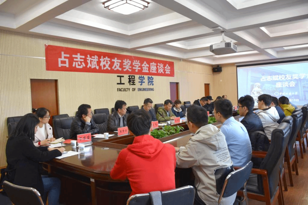 (通讯员:卓越 王焱)为凝聚校友力量,促进院校发展,落实感恩励志教育,11月18日下午,工程学院在工程楼315会议室召开“占志斌校友奖学金座谈会”。占志斌校友及夫人江红女士、校友工作与教育基金管理处处长徐岩、学生工作处副处长苏洪涛、工程学院姚爱国教授、工程学院党委书记陈飞、党委副书记江广长、勘察与基础工程系党支部书记段隆臣、校友工作与教育基金管理处丁苗苗、24名“占志斌校友奖学金”获奖学生代表参加座谈会。座谈会由工程学院副院长窦斌主持。