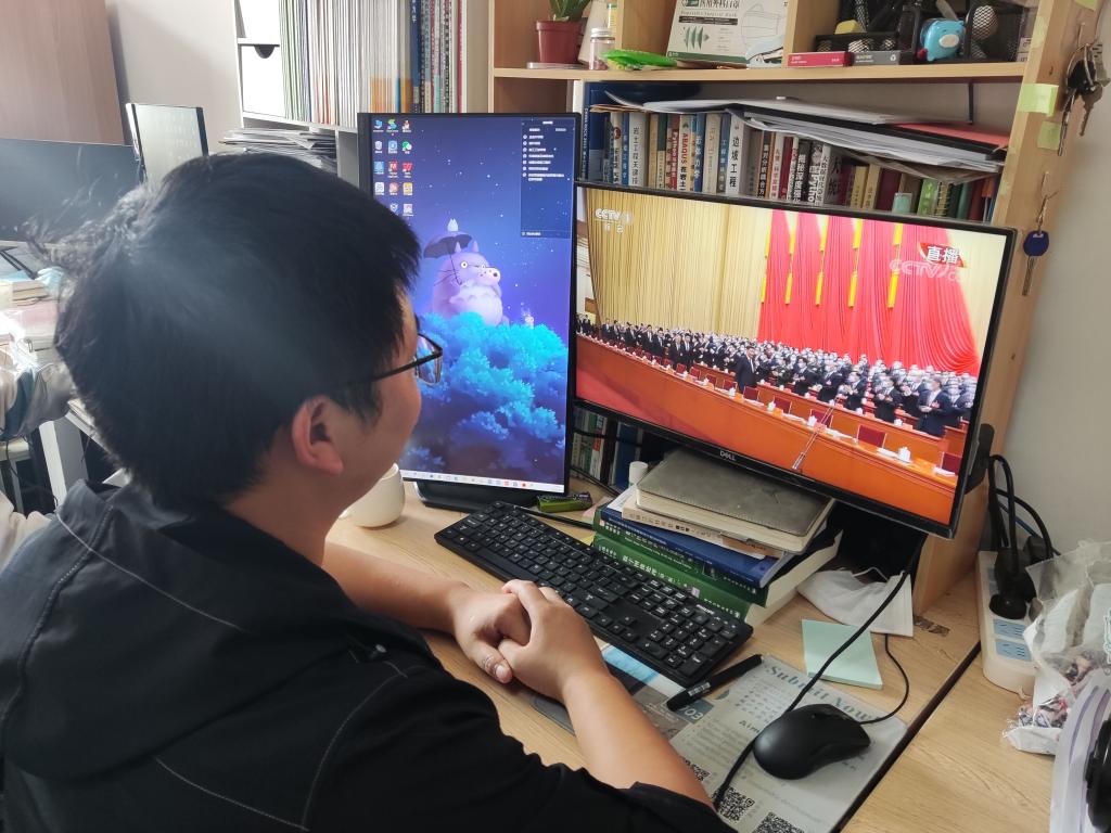 观看大会直播的师生认为,党的十九大以来的5年,以习近平同志为核心的党中央审时度势、守正创新,敢于斗争、善于斗争,团结带领全党全军全国各族人民有效应对严峻复杂的国际形势和接踵而至的巨大风险挑战,以奋发有为的精神把新时代中国特色社会主义不断推向前进,攻克了许多长期没有解决的难题,办成了许多事关长远的大事要事,推动党和国家事业取得举世瞩目的重大成就。