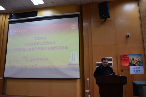 院长焦玉勇同志做学院工作报告,全面总结了学院取得的突出成绩和宝贵经验,认真剖析了学院发展过程中仍然存在的不足和亟待解决的问题。焦院长指出,2023年是“十四五”改革发展第三年,也是学院发展的关键时期,面临重大机遇,也迎来严峻挑战,学院将在习近平新时代中国特色社会主义思想的指引下,坚决贯彻落实党的二十大精神,团结一心、振奋精神、克服困难、努力工作、开拓进取,为建设地球科学领域世界一流大学,把工程学院建设成为地质工程与人居安全领域特色鲜明、享誉国际的一流研究型学院而接续奋斗!