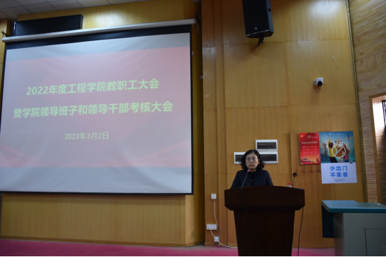 2023年3月2日下午,工程学院在教三楼109召开全院教职工大会,总结2022年度学院工作并部署2023年度重点工作。院领导班子、全院教职工及学生代表参加会议,会议由学院党委书记李红丽主持。