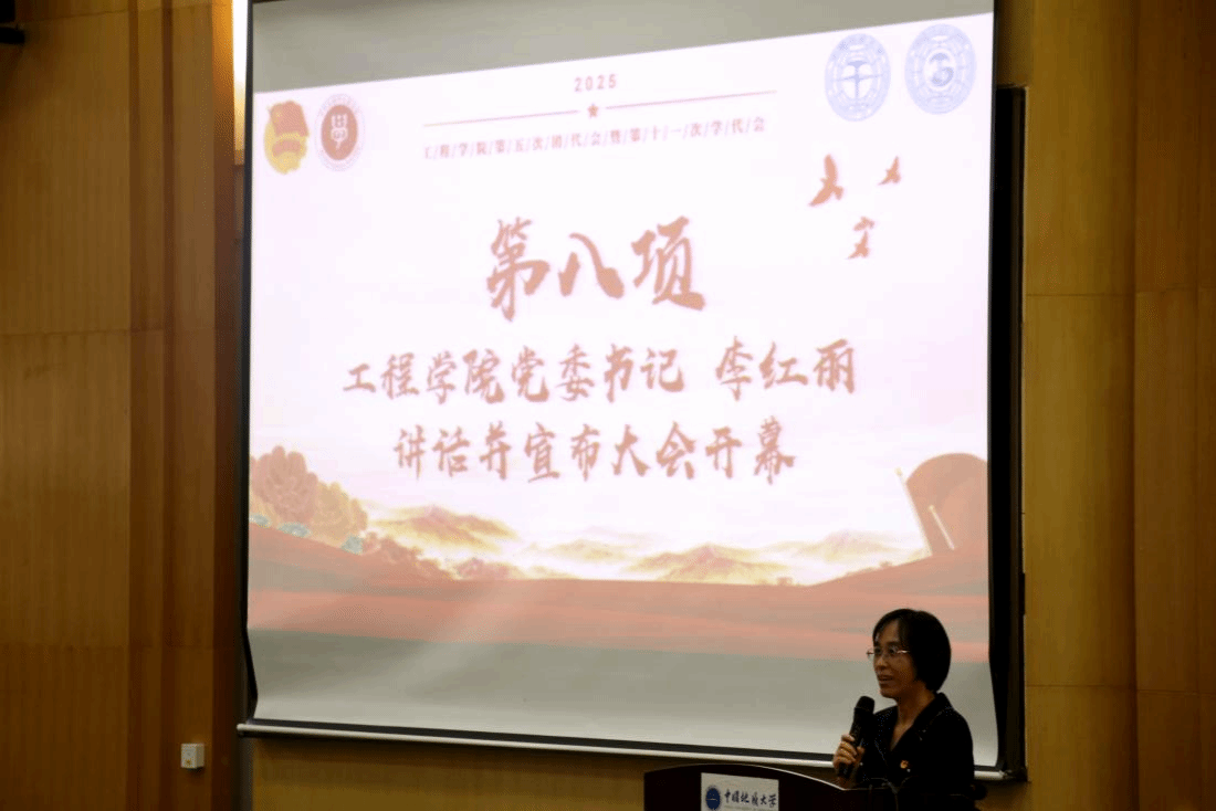 开幕式最后一项议程,由工程学院党委书记李红丽讲话并宣布大会开幕。她表示,学院党委高度重视、关心、支持共青团工作和青年工作,在学院党委的坚强领导和学校团委的悉心指导下,学院共青团工作为学院的人才培养和青年成长做出了应有的贡献,取得了积极的成效。她提出了三点希望,一是希望广大青年学子胸怀家国天下,练就过硬本领,做知行合一的奋斗者;二是希望广大学生骨干锐意改革创新,引领校园风尚,当青春建功的先锋队;三是希望学院团学组织强化桥梁纽带,提升服务效能,建凝心聚力的坚强堡垒。在全场热烈的掌声中,她郑重宣布大会正式开幕。