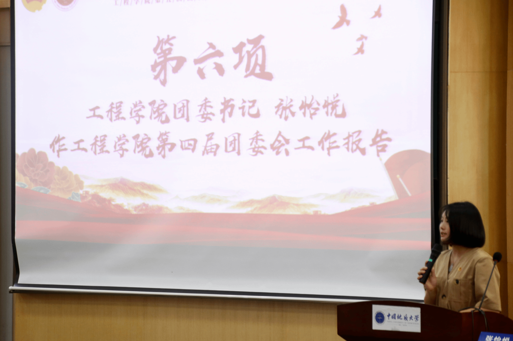 工程学院团委书记张怡悦作工程学院第四届团委会工作报告