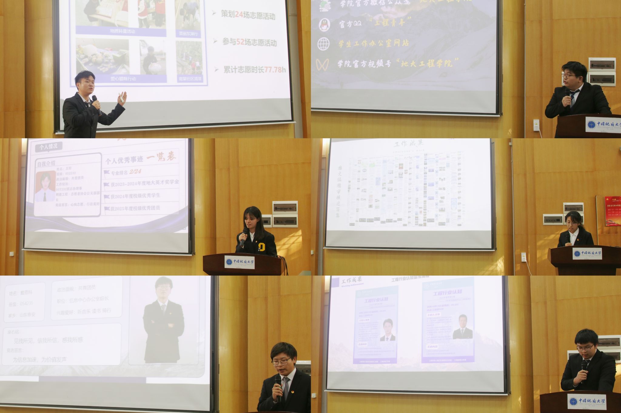 开幕会后,会议由学院团委主席团成员刘宜之主持。全体代表分别听取了第四届团委会作工作报告、第十届学委会工作报告,选举了第五届团委会、第十一届学委会委员,审议通过了共青团中国地质大学(武汉)工程学院委员会章程、工程学院学生会章程,选举了2025 届团学组织主席团成员。