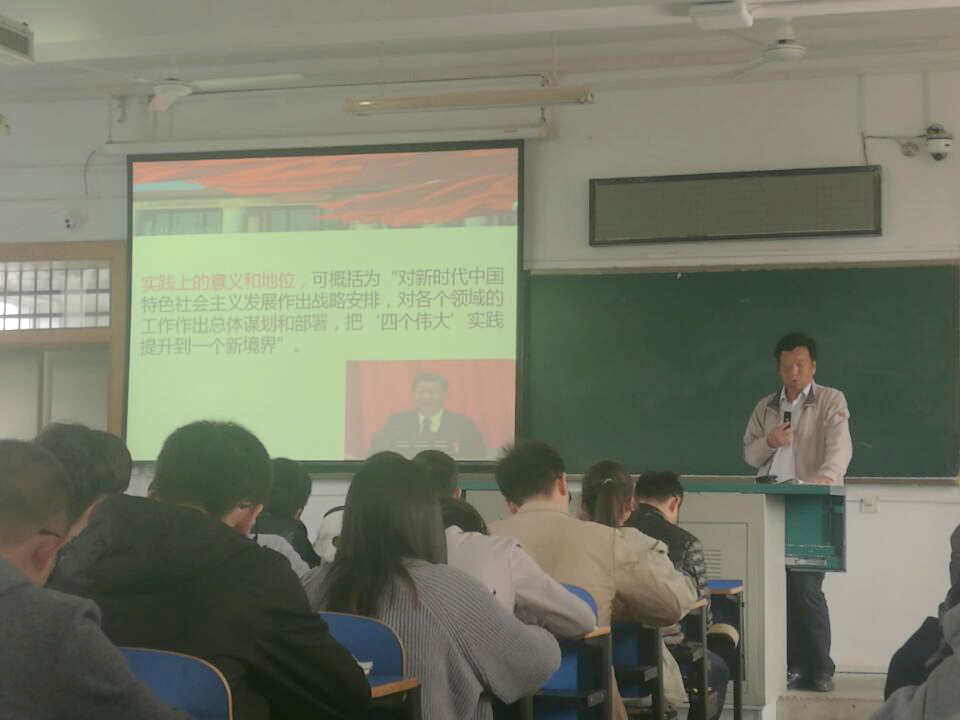 10月29日上午,我院党委书记陈飞应邀为同学们讲授党课第五讲。陈书记带领同学们剖析了十九大精神的内核。陈书记将习近平总书记的讲话概括为“对新时代中国特色社会主义发展做出战略安排,对各个领域的工作作出总体谋划和部署,把‘四个伟大’实践提升到新的境界”,同学们加深了对党的十九大精神的理解。