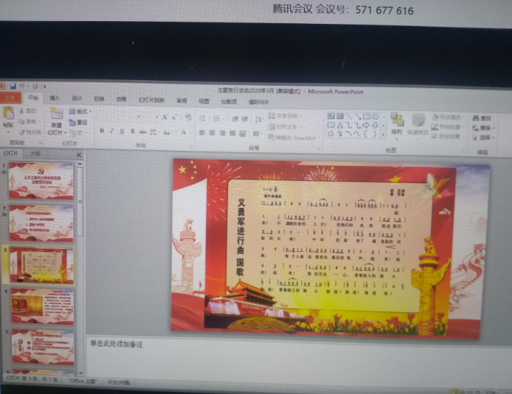 (通讯员:杨冠青)疫情不绝,党员打赢防控阻击战的决心不懈。在2020年3月26日这个特别的日子里,工程学院7个教工党支部按照学校组织部的要求,积极开展线上“支部主题党日”学习活动,各支部在抗击新冠肺炎关键时刻,依然不忘初心,牢记使命,唱国歌、宣读入党誓词、学党章,不忘党员本色。