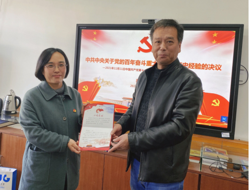 最后,陈飞同志为支部11月份过政治生日的同志发放了纪念卡,李红丽、高晓东、陈婵三位同志讲述了自己加入共产党的心路历程、成长经历和工作感悟。