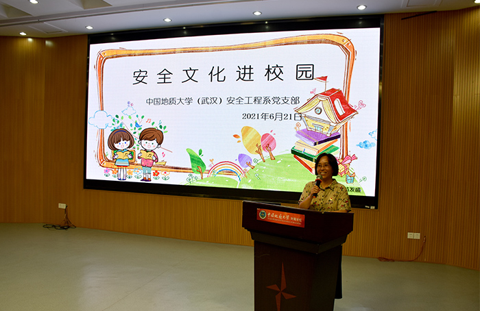 (通讯员 周克清)为培养中小学生的公共安全意识,提高中小学生面临突发安全事件自救自护的应变能力,结合党史学习教育扎实推进“我为群众办实事”实践活动,引导党员干部立足本职工作全心全意为师生群众服务。工程学院安全工程系党支部在院党委书记李红丽同志的带领下,于2021年6月21日下午走进中国地质大学(武汉)附属学校开展安全文化进校园实践活动。中国地质大学(武汉)附属学校总支书记彭冠军、副校长刘立新、部分老师和小学部四年级全体学生参与了本次活动。