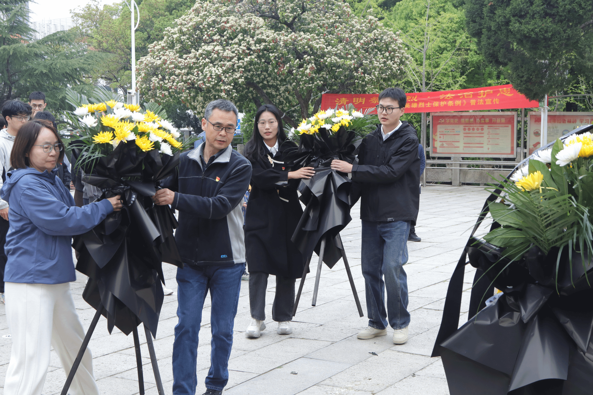 聆听完窦斌同志的讲话后,全体同志两两一组,有序地向英烈献花并行鞠躬礼,表达对先烈的敬仰之情。