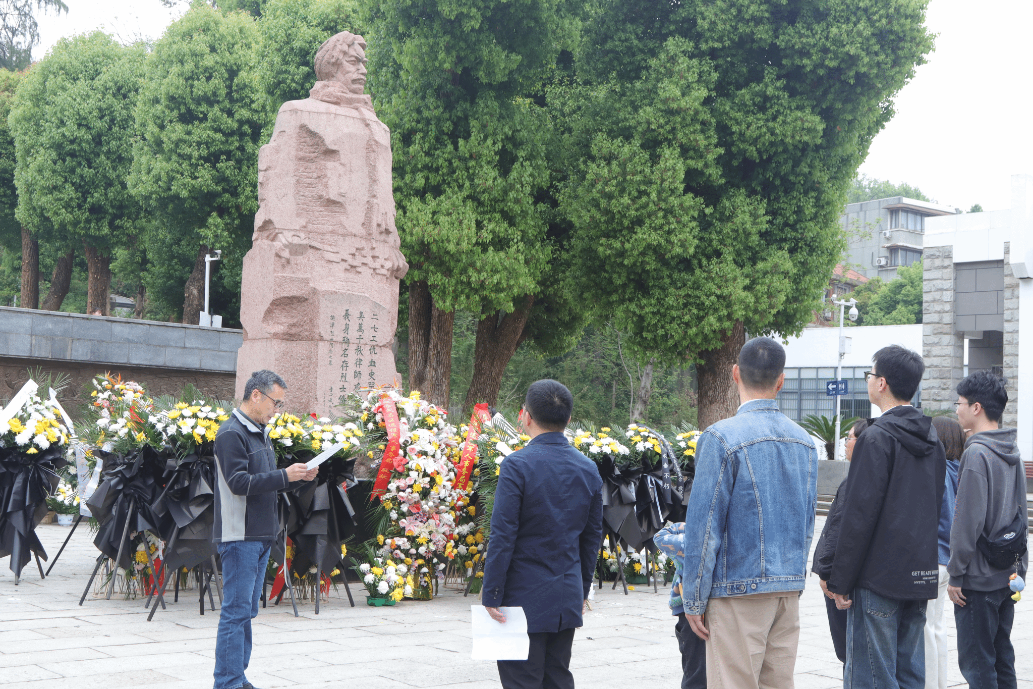 活动伊始,全体师生整齐列队于施洋烈士纪念雕像前,神情庄重肃穆。在激昂的国歌声中,大家向革命先烈致以最崇高的敬意。国歌奏毕,全场默哀一分钟,寄托对先烈的深切缅怀。随后,师生代表向施洋烈士纪念雕像敬献花篮,表达对先烈丰功伟绩的追思。
