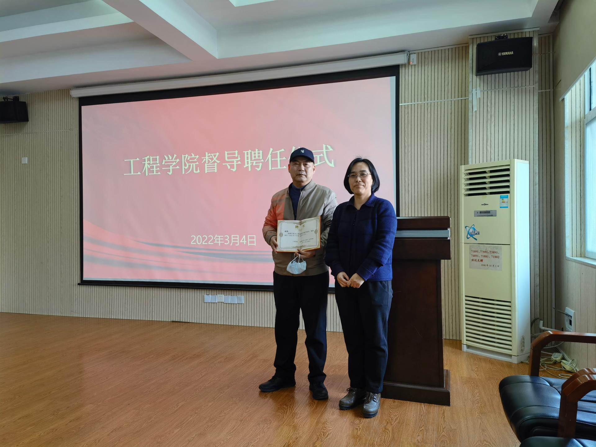 (通讯员:陈婵)2022年3月4日下午,工程学院在工程楼315会议室举行本科教学督导聘任仪式。会议由副院长倪晓阳主持,学院党委书记李红丽、副院长倪晓阳、校聘督导员姚爱国、余宏明以及新一届学院教学督导组的各位专家出席了会议。
