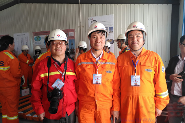 副校长王华(左三)带队参加完井仪式并慰问师生
