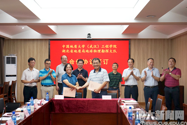 (通讯员张鹏 曾聪)8月31日,为落实学校与湖北省地质局战略合作协议和双方推进深化合作座谈会要求,我院与湖北省地质局地球物理勘探大队(以下简称“湖北物探队”)框架合作协议签订暨产学研基地揭牌仪式在湖北物探队举行。湖北省地质局总工程师熊保成,湖北物探队党委书记、队长梅焱祥,校党委副书记王林清,开云app登录入口党委书记李红丽等参加签约仪式。湖北物探队党委副书记郑乐平主持会议。
