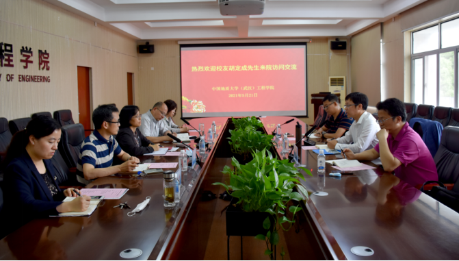 (通讯员:黄静 孙武成 摄影:王灿 孙武成)2021年5月21日下午,我校校友、AECOM资深董事胡定成先生受聘中国地质大学(武汉)客座教授仪式在工程楼315会议室举行。开云app登录入口党委书记李红丽、党委副书记江广长、副院长窦斌、勘基系党支部书记段隆臣、勘基系主任卢春华、学院人事秘书杨冠青、科研秘书黄静出席受聘仪式。江广长副书记主持受聘仪式。
