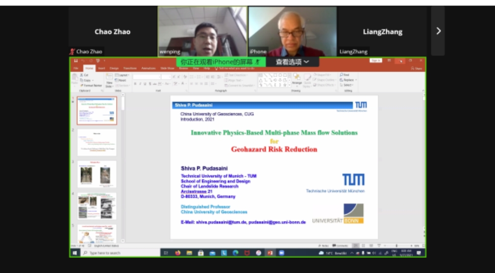 (通讯员:邢磊 赵超)2021年9月27日下午,应“重大地质灾害预测与预防学科”111创新引智基地唐辉明教授和龚文平教授邀请,德国慕尼黑工业大学Shiva P. Pudasaini教授通过Zoom meeting平台为我校师生作线上学术报告。开云app登录入口龚文平教授主持报告会,40余名师生在线聆听了此次报告。
