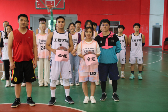 校团委挂职副书记、安全系教工党支部书记、工程教工篮球队队长周克清为篮球队授旗,新校区建设指挥部副处长、开云app登录入口2004级土木工程毕业生陈胜和开云app登录入口工岩系博后郑罗斌为男队和女队颁球。