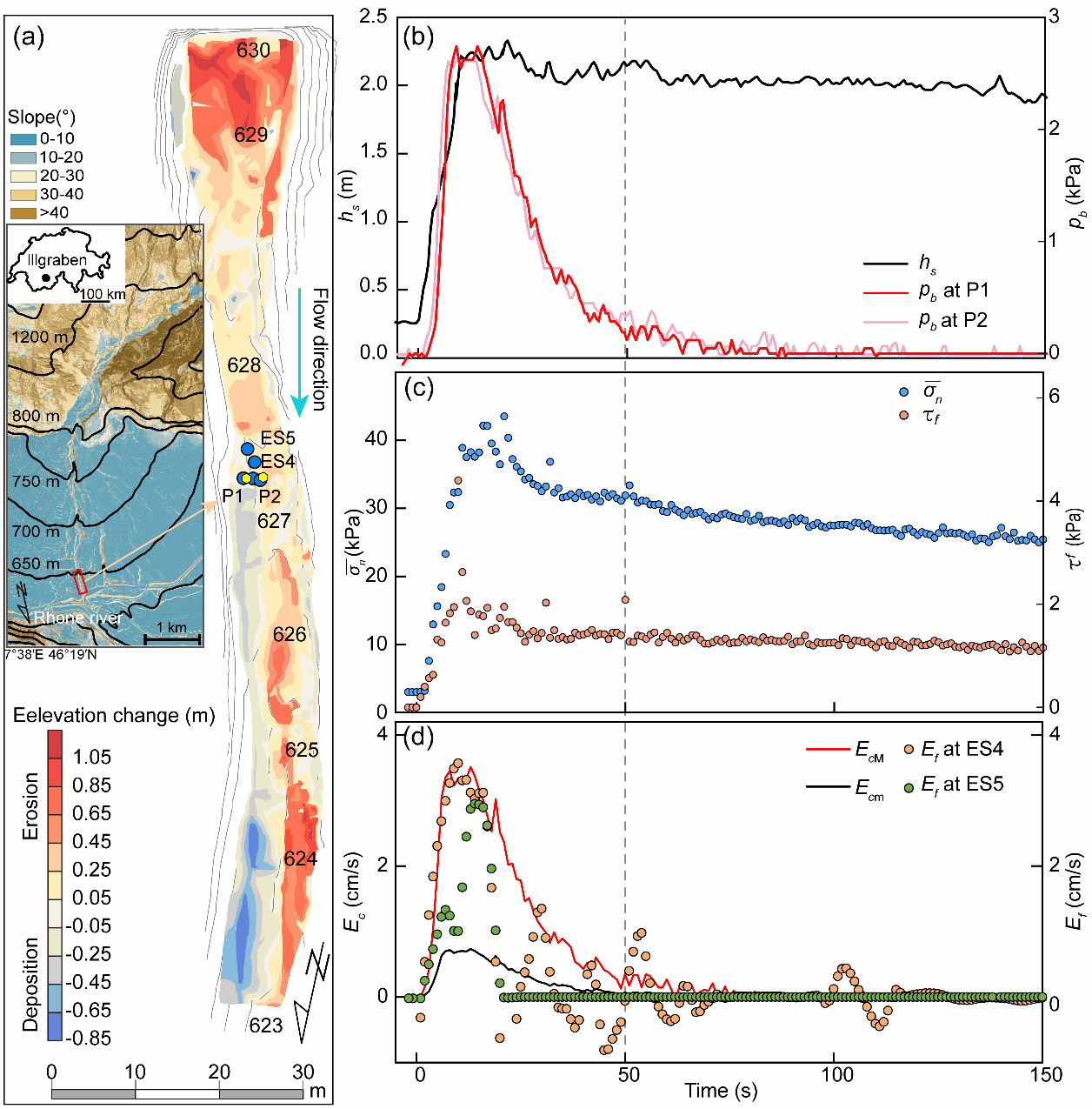 高位泥石流以完全剪切和激荡的形式沿程冲下,是山区最频繁且致命的地质灾害之一。泥石流在运移过程中能够裹挟物源,显著增加其方量和致灾能力。然而,泥石流的侵蚀界面理论尚未建立,极大制约了泥石流冲出方量预测和风险区规划。