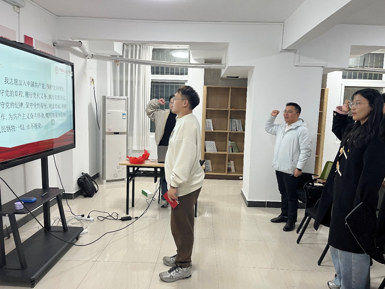 活动伊始,全体党员齐唱国歌,庄重的歌声激发了党员们的爱国热情。随后,在学生党员丁晓龙的带领下,党员们重温入党誓词,铿锵有力的誓言彰显了大家对党的忠诚与为共产主义事业奋斗的坚定决心。党章诵读环节,党员们认真研读,进一步加深了对党的性质和宗旨的理解。