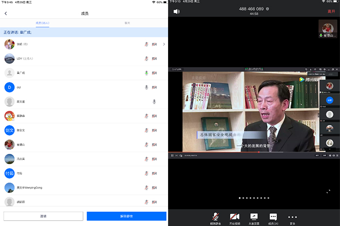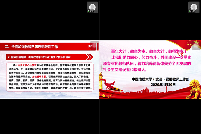 2020年4月29日下午,工程地质与岩土工程系党支部利用腾讯会议软件开展了主题党日活动,共有35名支部成员参加。本期主题党日活动的主题是:(1)学习“国家总体安全观”;(2)学习中共中央《关于加强和改进新时代师德师风建设》。活动由党支部副书记文新主持,副院长王亮清等工岩系全体党员参加了主题党日活动。